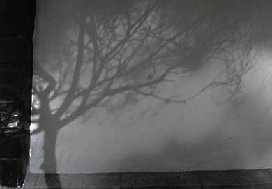 Στο παράθυρο. Ένα σύννεφο μοιάζει να έχει σφηνωθεί στα πελώρια κλαδιά του γειτονικού μας δέντρου, δημιουργούνται οικεία ανθρωπόμορφα σχήματα, τα διακρίνω από τις ανατολίτικες μύτες, προτιμώ να μετατρέπω πρόσωπα σε μύτες, τα σχήματα προσώπων σε βάζουν σε σκέψεις, τρώνε χρόνο κι ωμά ψυχικά αποθέματα. Ήρθε κι έκατσε πλάι μου, το βλέμμα της• συνταξιδιώτης του δικού μου, τα κλαδιά του μεγάλου δέντρου πετάγονταν από την καμπύλη του τραχήλου της καθώς μαζεύει τα μαλλιά στο πλάι.