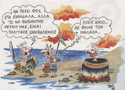 ζητώ την επιείκειά σας. Τη λέξη «αποκάλυψη» μου είναι αδύνατον να την φανταστώ χωρίς εισαγωγικά. Οι «αποκαλύψεις» περί χρηματισμού ορισμένων πολιτικών μέσω της Εξεταστικής της Βουλής παρόλο που φαίνονται πολλές, είναι πολλές απατηλά, ελάχιστες. Με βάση αυτά που ζήσαμε και συνεχίζουμε οι άμοιροι να ζούμε, επιβάλλεται να τις πιστέψουμε όχι ως έχουν, αλλά ως τα είδωλα που παρουσιάζονται για να κρύψουν σκιές… και όσο αφήνουν τις σκιές αυτές με το ανθρωπόμορφο σχήμα να υπάρχουν, να αναπνέουν, να ζουν ανάμεσά μας, ο τόπος δεν πρόκειται να προχωρήσει όσα μέτρα κι αν παρθούν• όταν φήμες οργιάζουν για υπόγειες συνεννοήσεις που -δεν δύναμαι προσωπικά να υιοθετήσω- αγγίζουν το επίπεδο των δύο αρχηγών, καταλαβαίνουμε τις εύλογες σκέψεις περί κατευνασμού της λαϊκής οργής (μια οργή που ενδεχομένως να «κάτσει στ’ αυγά της»…).