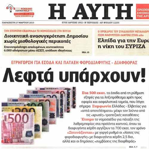 Ο Γιώργος Παπανδρέου είχε βρει τα λεφτά τον Σεπτέμβριο του 2009. Έξι μήνες μετά ήρθαν η τρόικα και το Μνημόνιο. Αν και ο Τσίπρας βρήκε τα λεφτά, όπως πανηγυρίζει η εφημερίδα του ΣΥΡΙΖΑ (και δίνει αφορμή για πανηγύρια και στον εμπνευστή του συνθήματος-εδώ), χαράς ευαγγέλια. Έχει δυο-τρεις μήνες μπροστά του για να τα μοιράσει…