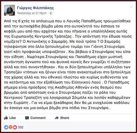 «Για να είμαι ξεκάθαρος δεν θα με ενοχλούσε καθόλου αν έσκαγε και μια βόμβα στα πόδια του Στουρνάρα»