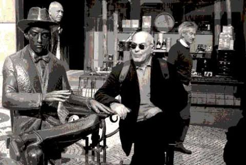 ο Αγριμολόγος πίνει εσπρέσσο με τον φίλο του Φερνάντο. A Brasiliera, Λισαβόνα