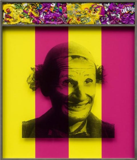 ©Kathryn Andrews Hobo (Lemonhead), 2014 Ink on paper and plexiglas, aluminum, paint, mixed media 111.1 x 94 x 5.7 cm / Miami Beach 2014