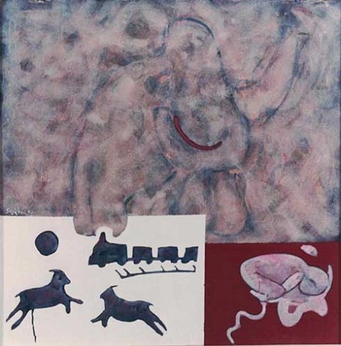 «À la recherche du temps perdu no5», 1990 -Στρ.Φουντούλης, ακρυλικό σε καμβά 90×90 εκ.