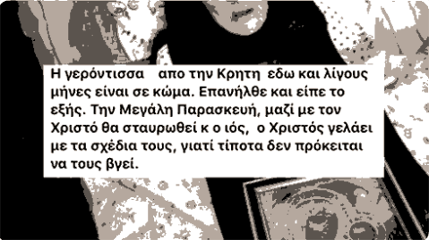 2. Αυτό που μας είπε η Γερόντισσα πριν από καιρό είναι ότι έρχεται γρίπη από την Ασία και ο κόσμος θα κλειστεί στα σπίτια του». (sic)