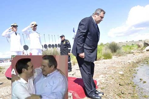 Ο υπουργός Αμυνας φαινόταν συγκινημένος. Ηταν ο μόνος που στάθηκε πάνω από τη θάλασσα για αρκετή ώρα αποτίνοντας έτσι φόρο τιμής στους νεκρούς σαλαμινομάχους. Οι κάμερες, οι φωτογραφικές μηχανές και τα κινητά τηλέφωνα πήραν φωτιά όταν έριξε το στεφάνι στη θάλασσα και για το λόγο που εξεφώνισε αμέσως μετά για το πόσο μεγάλη αξία έχει να είσαι Ελληνας. Εκείνο που έκανε εντύπωση (στους δικούς μας γιατί οι ξένοι δεν γνώριζαν) είναι ότι ο Καμμένος δεν ασχολήθηκε με τον… Καμμένο. Ηταν παρών και ο αποπεμφθείς (για τα ρατσιστικά, ομοφοβικά και αντισημιτικά τιτιβίσματά του) υφυπουργός Δ. Καμμένος, αλλά ο υπουργός έκανε ότι δεν είδε, όσο κι αν προσπαθούσε ο Δ. Καμμένος να τον πλησιάσει ή έστω να εμφανιστεί σε κάποιο πλάνο τηλεόρασης. Ο Δ. Καμμένος ήταν… κομμένος από παντού. Στεφάνια πάντως έριξαν οι πάντες (περιλαμβανομένου και του Ι. Τραγάκη) και ας μην τους τράβηξαν οι κάμερες.