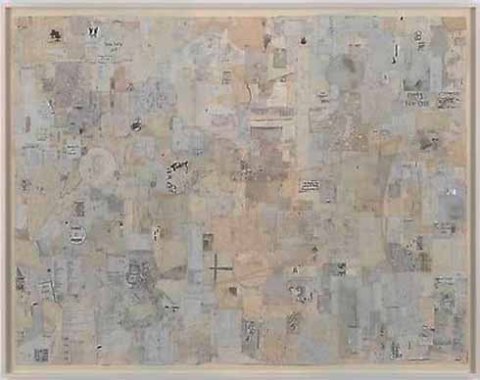 ©Simon Evans / Big Ghost, 2013 Found paper and mixed media on paper 214 x 278.1 cm -Courtesy James Cohan Gallery, NY