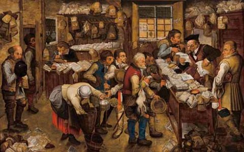 Ο πίνακας «Ο δικηγόρος του χωριού» (γνωστός επίσης και ως «Γραφείο του φοροσυλλέκτη» και με διάφορα άλλα ονόματα) είναι μια από τις σπάνιες πρωτότυπες συνθέσεις του και δείχνει μια χαοτική σκηνή με τους χωρικούς να σχηματίζουν ουρά στα γραφεία του δικηγόρου. Πολλοί από αυτούς κρατούν δώρα, όπως αυγά και πουλερικά.