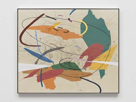 Julie Mehretu, “Untitled 2”, 1999. Mixed media on canvas. Installation view, Art Basel 2024. Courtesy Julie Mehretu and White Cube.