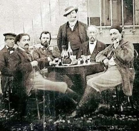 Ο δεύτερος από αριστερά είναι ο Εμίλ Μπερνάρ. Δίπλα του ο van Gogh κάθεται με μια πίπα, στέκεται ο Αντρέ Αντουάν, ιδρυτής του Ελεύθερου Θεάτρου του Παρισιού, και στα δεξιά ο Paul Gauguin.